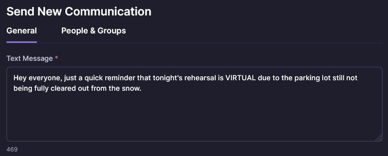 Send texts to your entire cast and crew, or just a select group. You can even schedule texts to be sent at a later time.